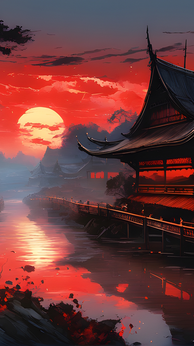 Edytor tapety: Dom nad rzeką w grafice