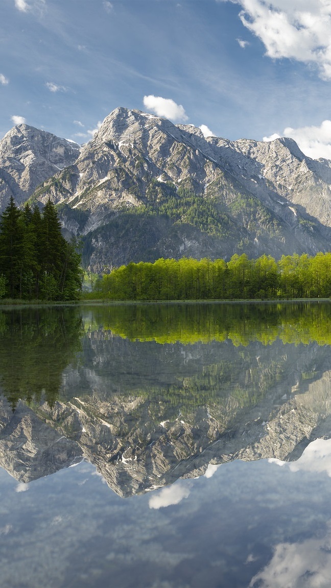 Edytor tapety: Odbicie gór w jeziorze Almsee