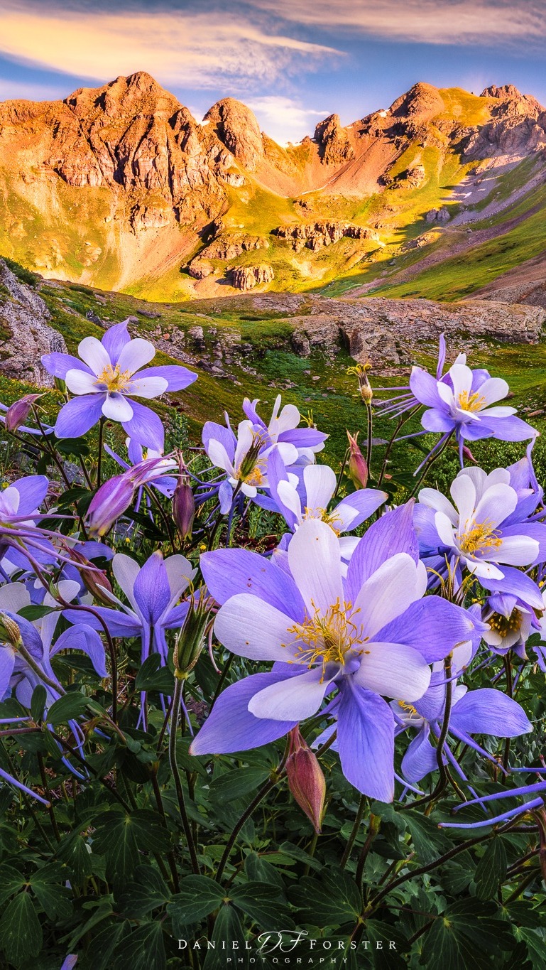 Edytor tapety: Orliki na tle gór