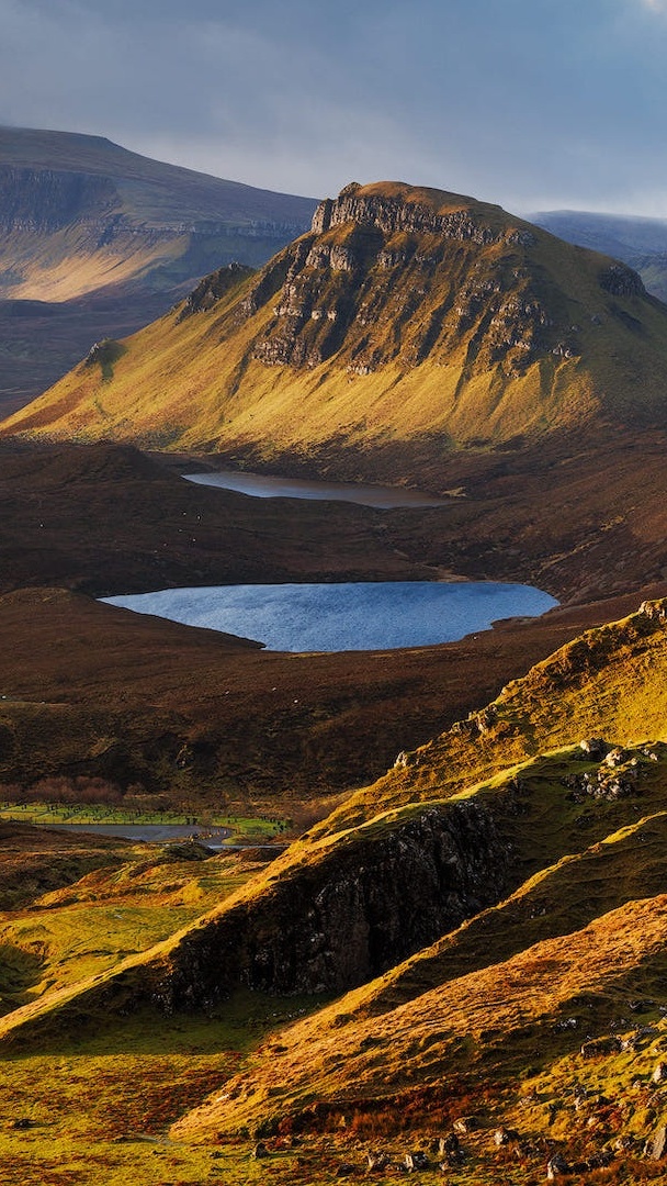 Edytor tapety: Rozświetlone wzgórza Quiraing w Szkocji