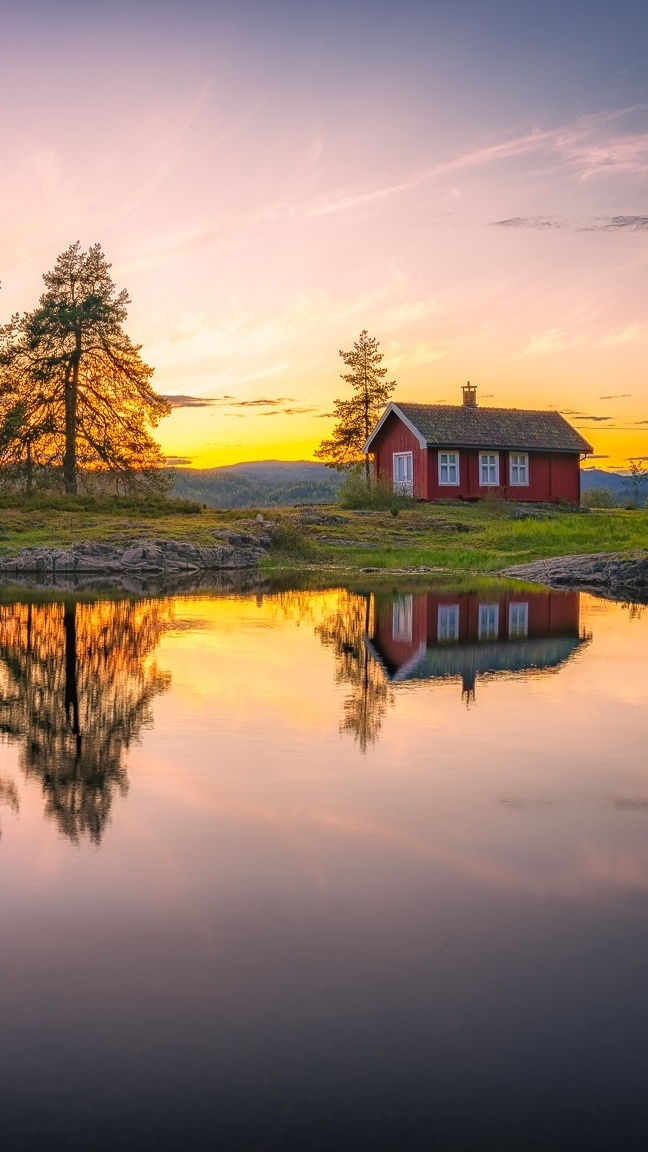 Edytor tapety: Mały domek nad jeziorem