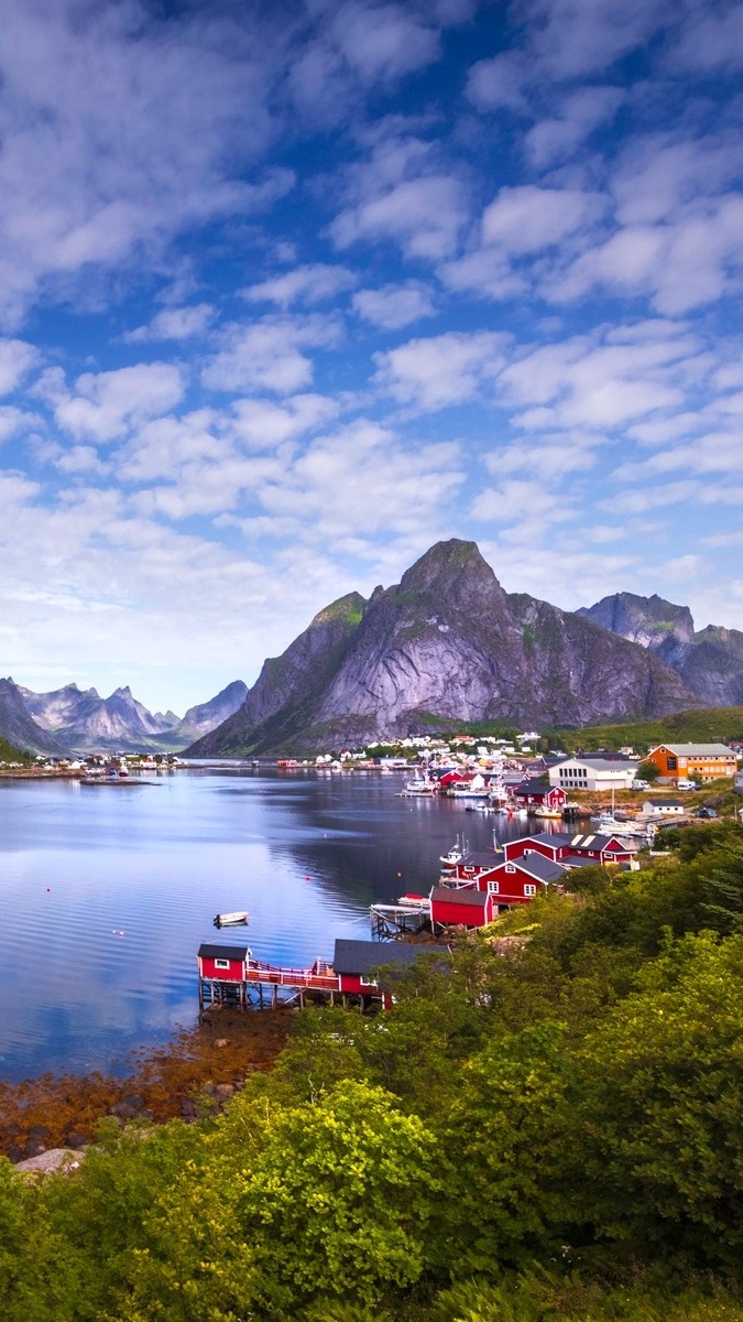 Edytor tapety: Wioska Reine na norweskich Lofotach