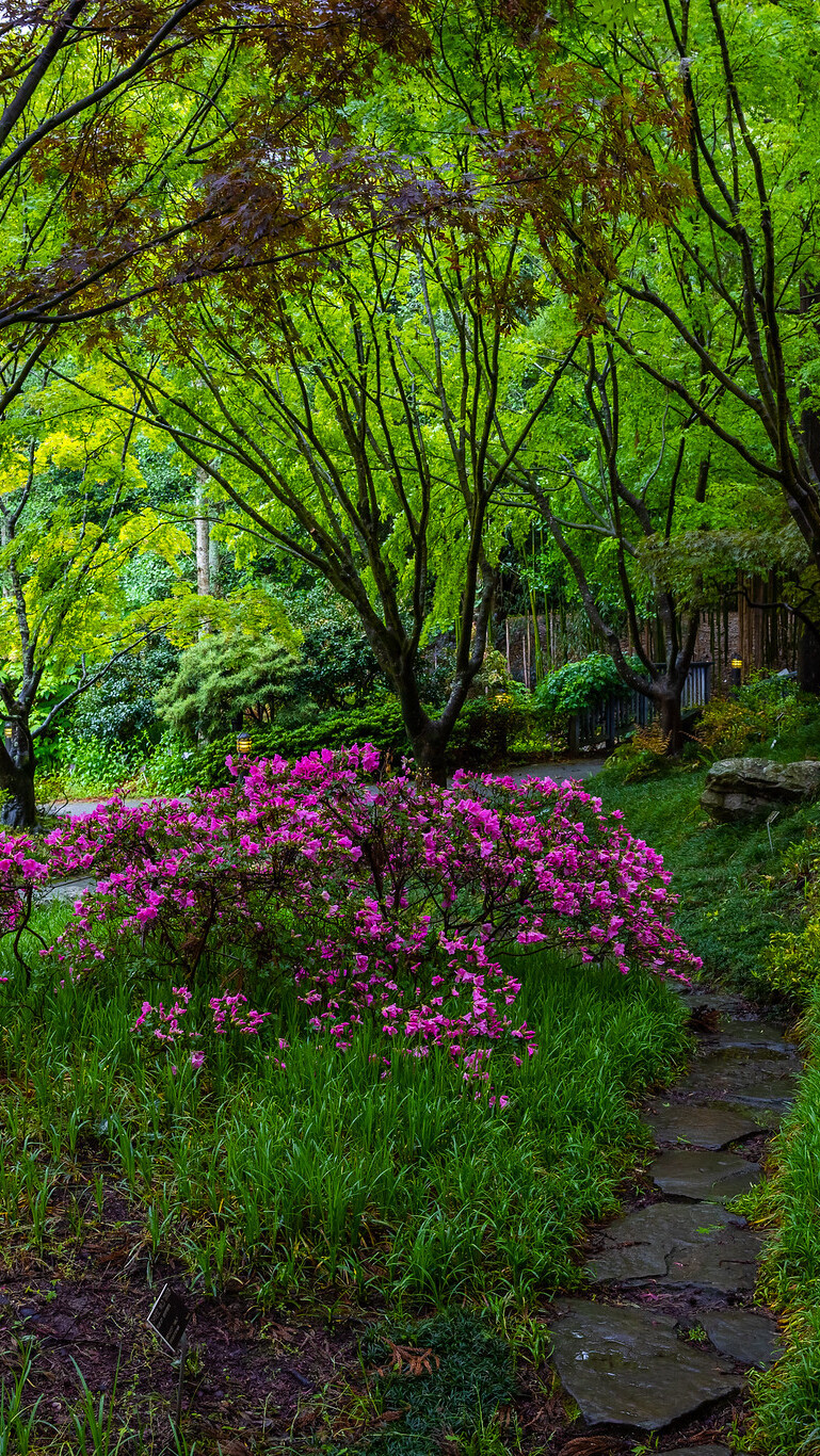 Edytor tapety: Kwitnący różanecznik w parku