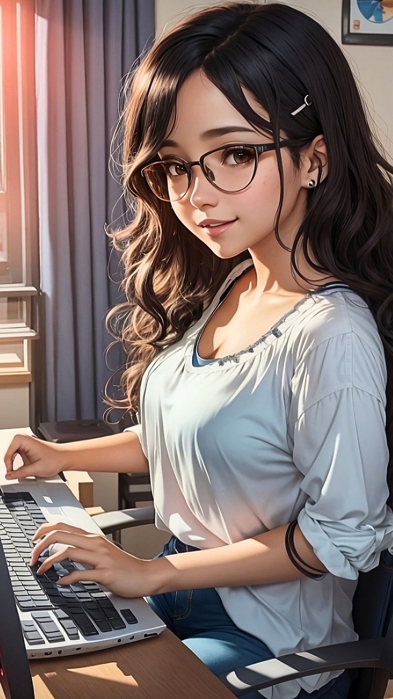 Edytor tapety: Dziewczyna w okularach przy komputerze