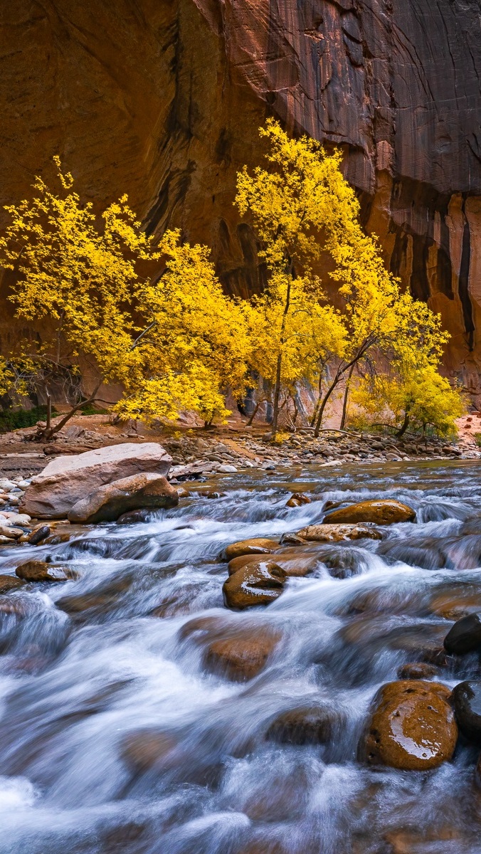 Edytor tapety: Pożółkłe drzewka na rzeką Virgin