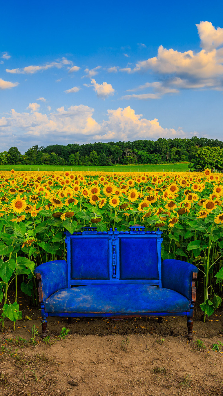 Edytor tapety: Kanapa na polu słoneczników