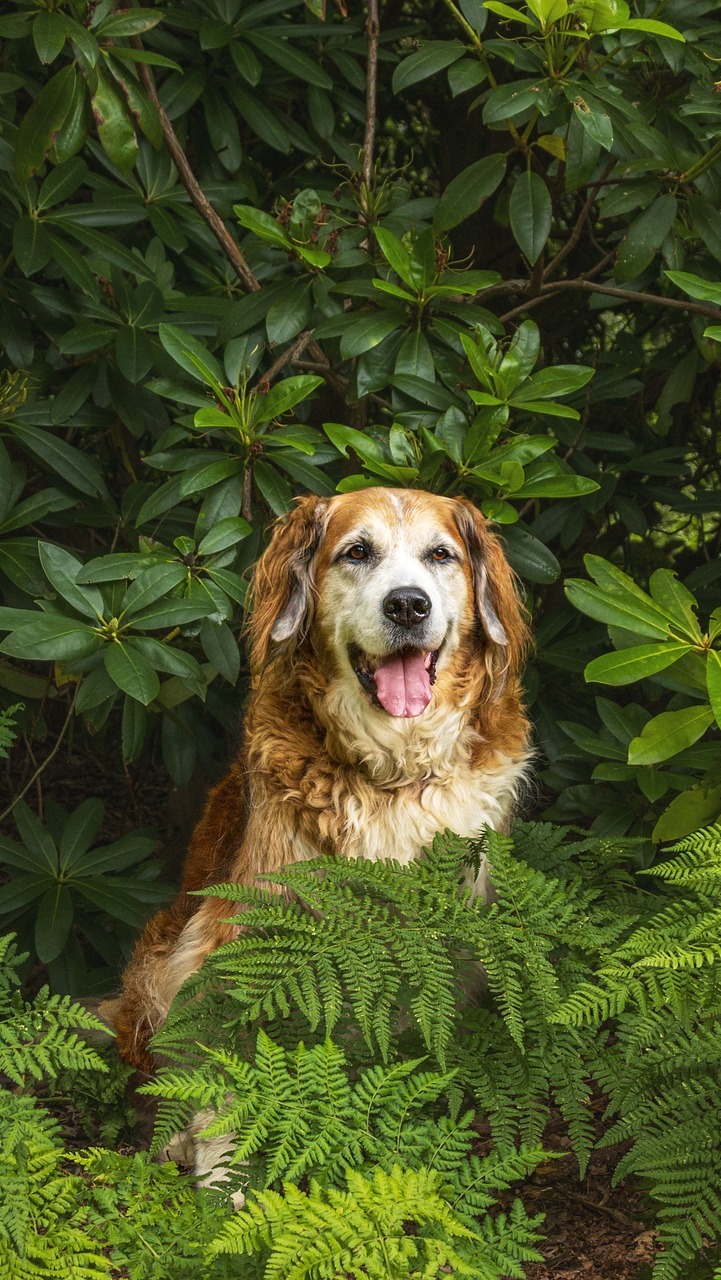 Edytor tapety: Pies wśród paproci i rododendronów