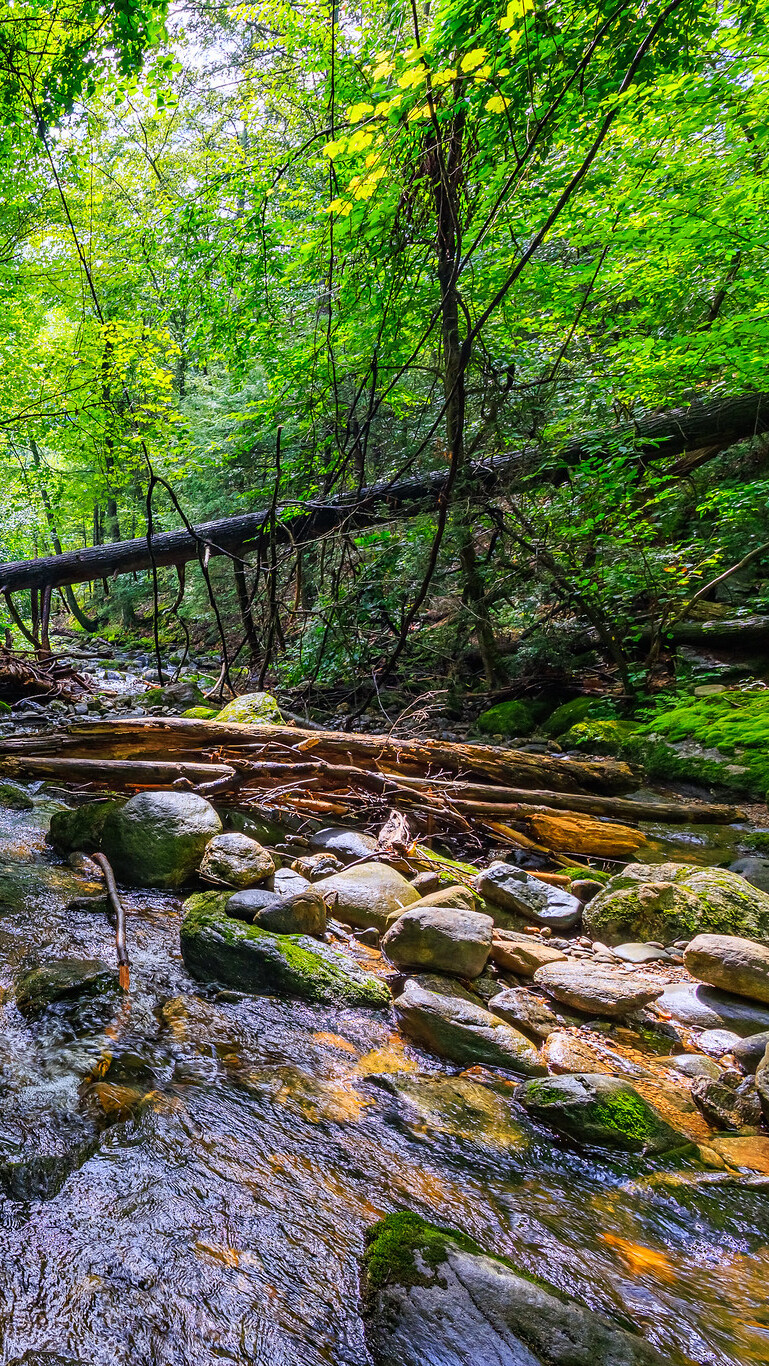 Edytor tapety: Połamane drzewa nad rzeką w lesie