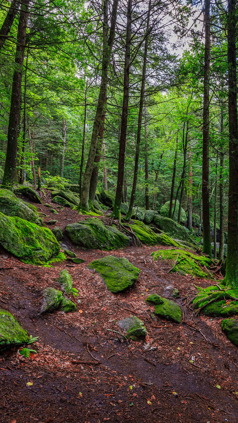 Edytor tapety: Omszałe kamienie pod drzewami