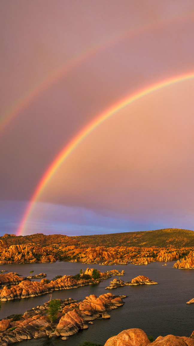 Edytor tapety: Tęcza nad skałami