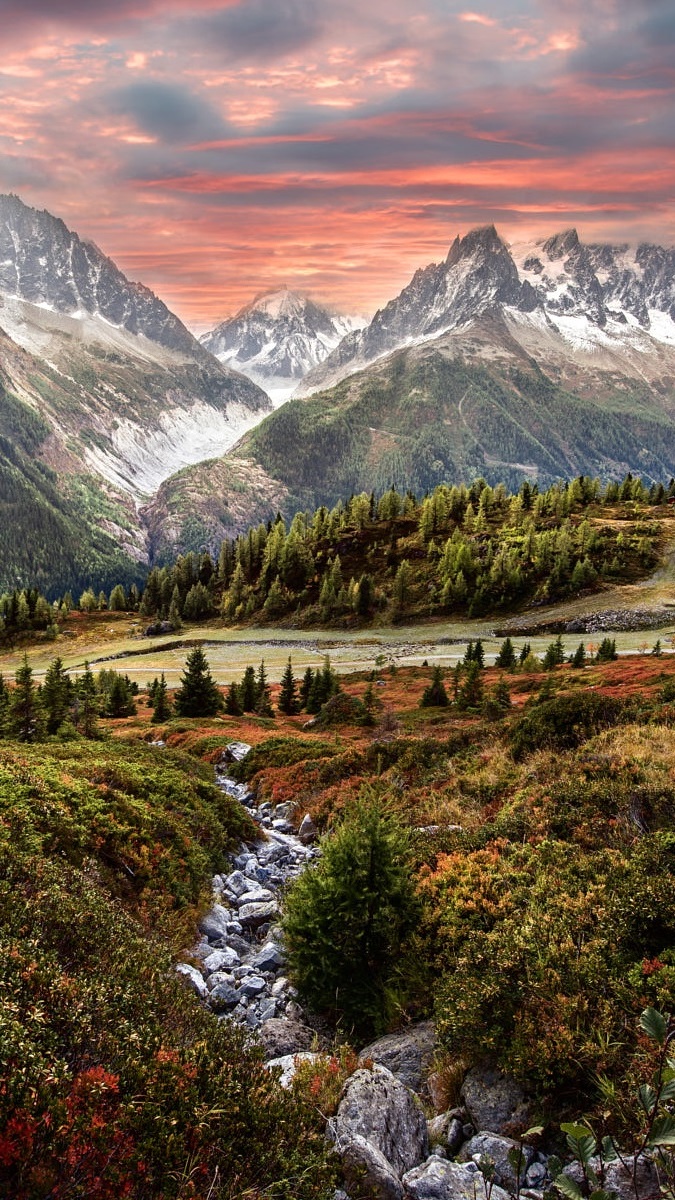 Edytor tapety: Las u podnóża ośnieżonych gór