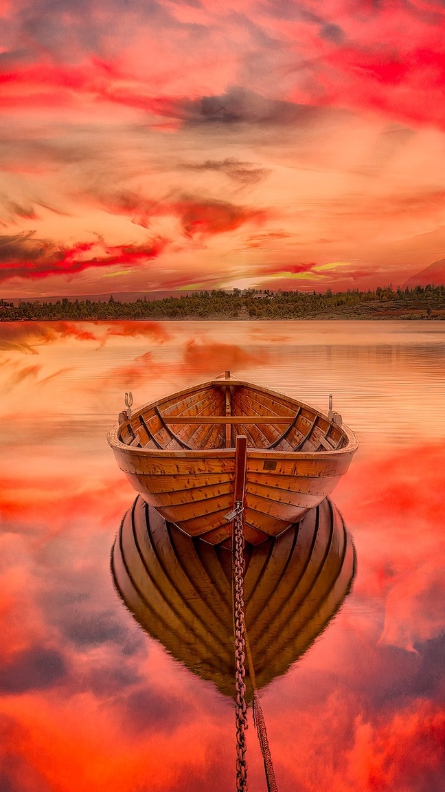 Edytor tapety: Łódka na jeziorze pod kolorowym niebem