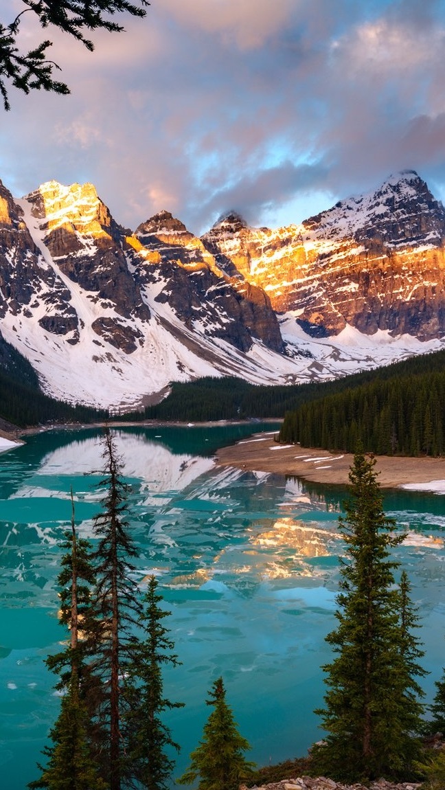 Edytor tapety: Ośnieżone góry nad jeziorem Moraine