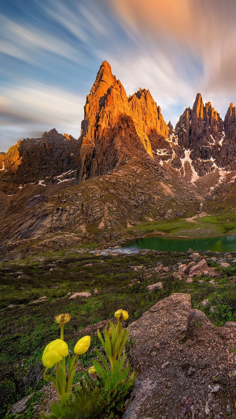 Edytor tapety: Rozświetlone szczyty gór