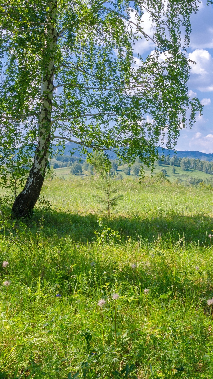 Edytor tapety: Brzoza na łące