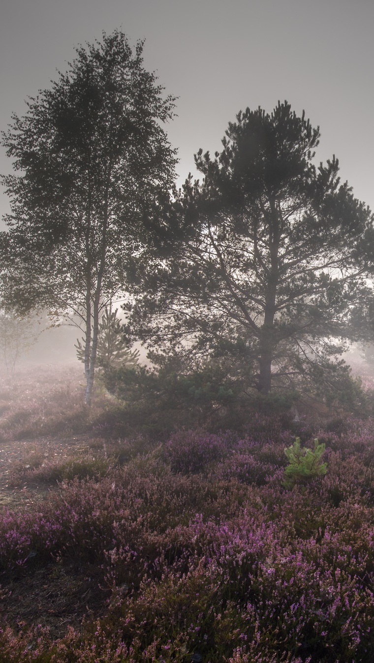 Edytor tapety: Poranna mgła nad wrzosowiskiem
