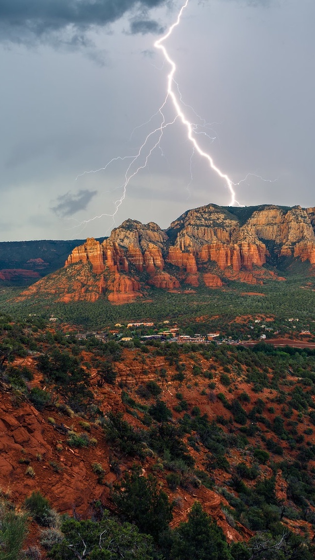 Edytor tapety: Piorun na niebie nad górami