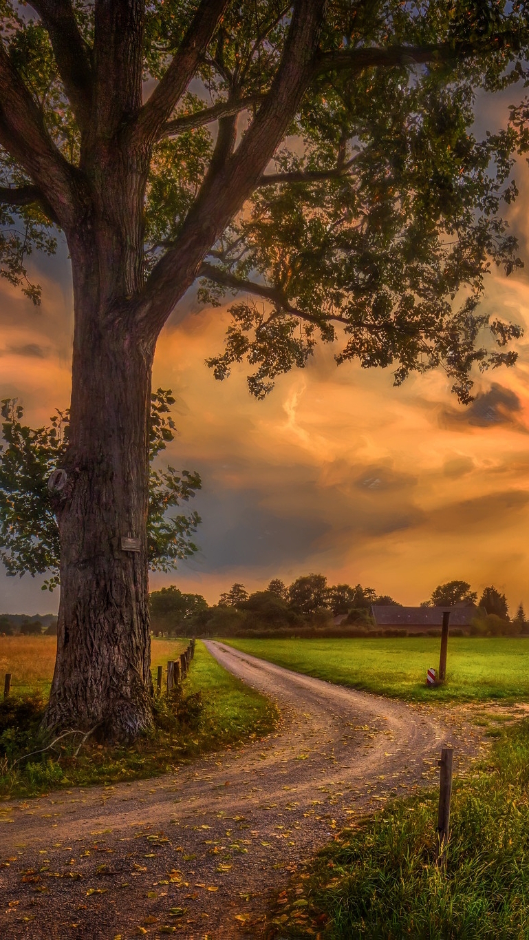 Edytor tapety: Drzewo przy polnej drodze