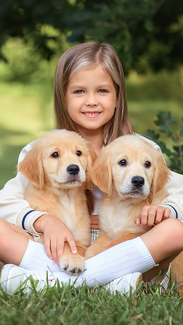Edytor tapety: Dziewczynka z dwoma szczeniakami