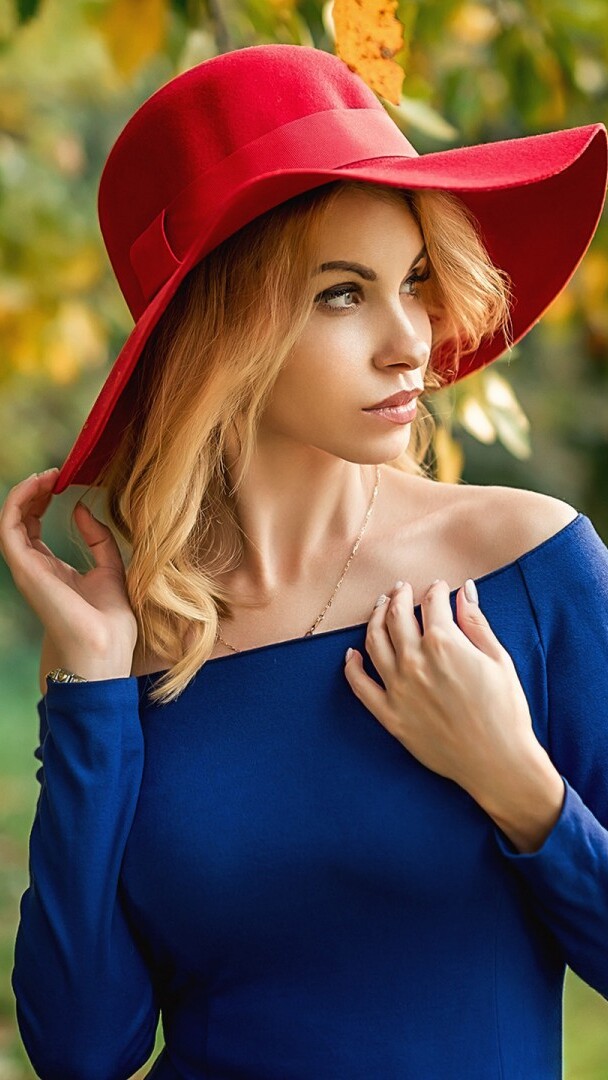 Edytor tapety: Kobieta w czerwonym kapeluszu