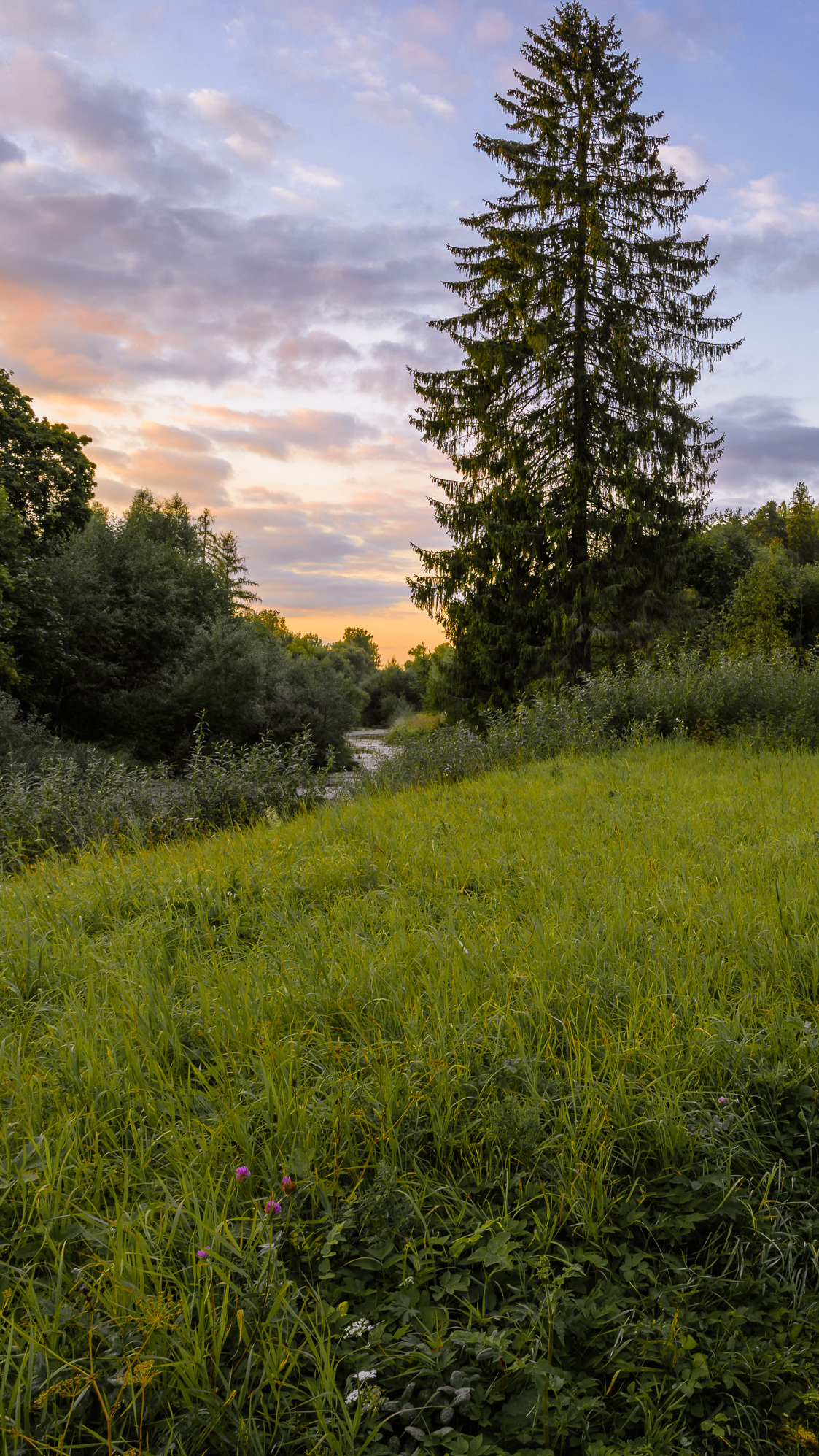 Edytor tapety: Drzewa i trawa na wzgórzu