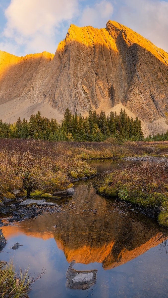 Edytor tapety: Odbicie rozświetlonych Gór Kanadyjskich w rzece