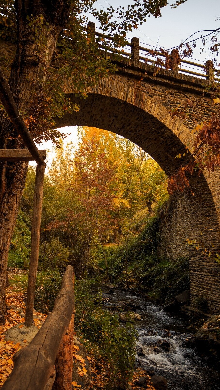 Edytor tapety: Kamienny most nad rzeką