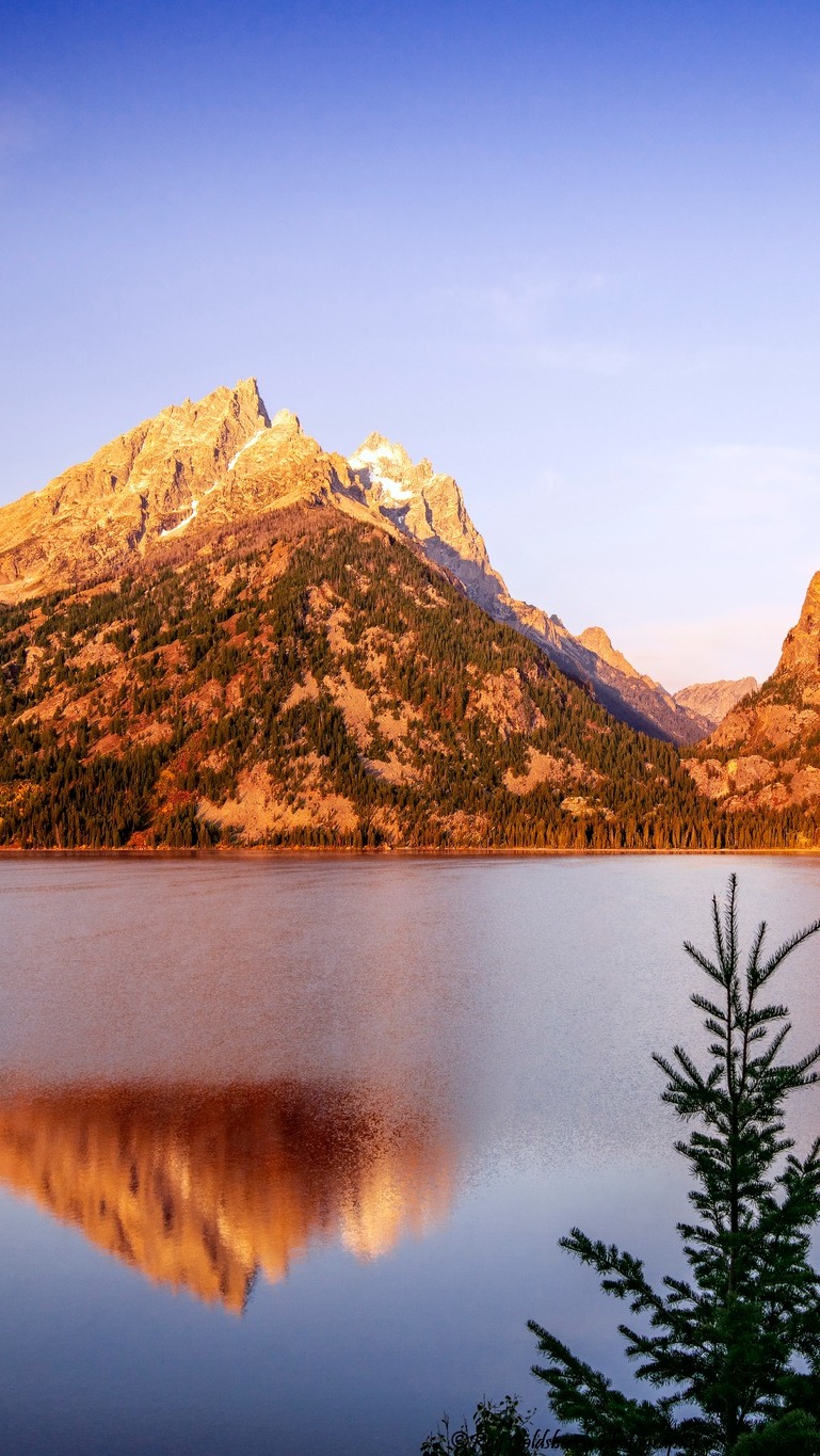 Edytor tapety: Rozświetlone góry nad jeziorem Jenny Lake