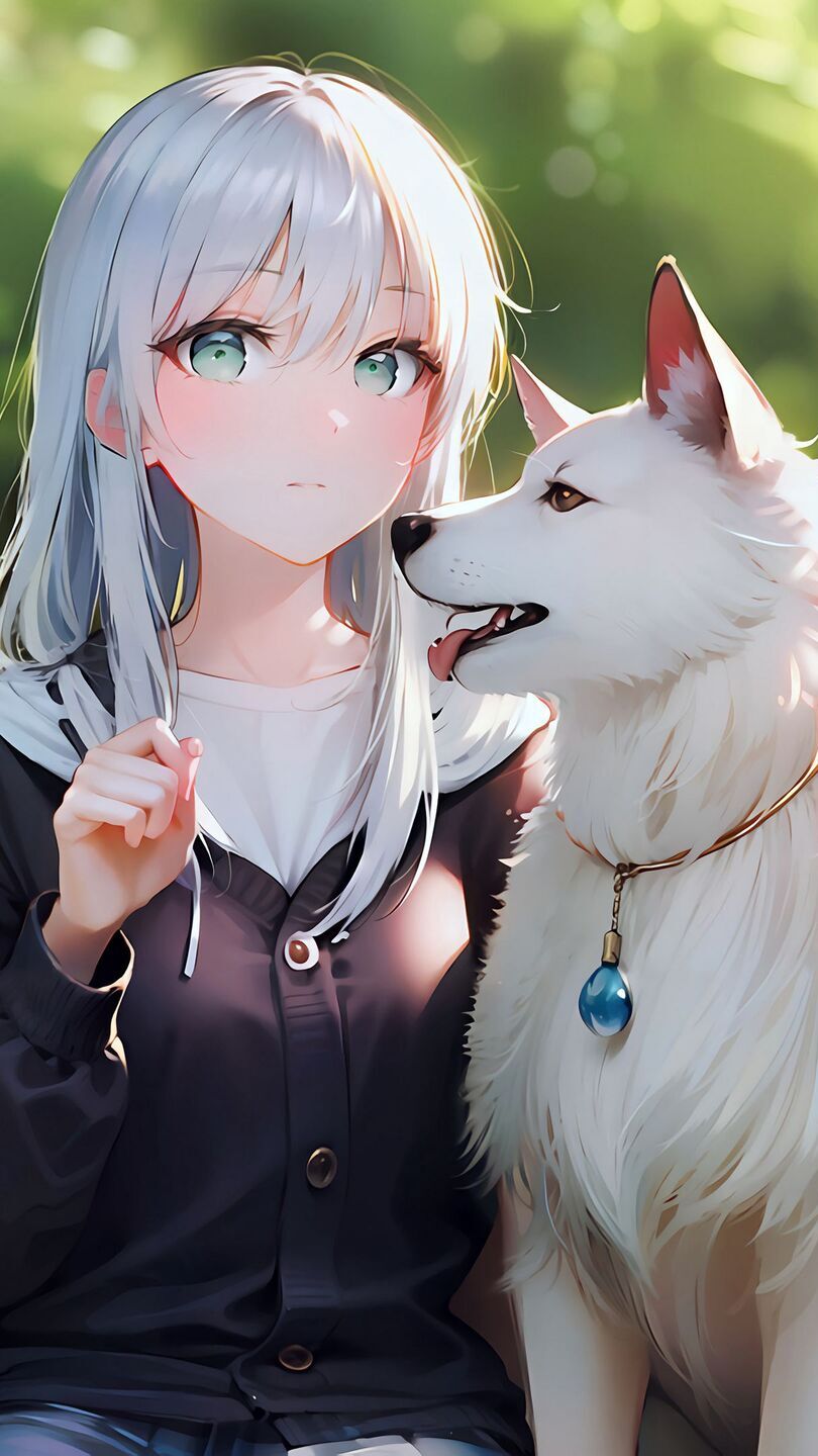 Edytor tapety: Dziewczyna z białym psem