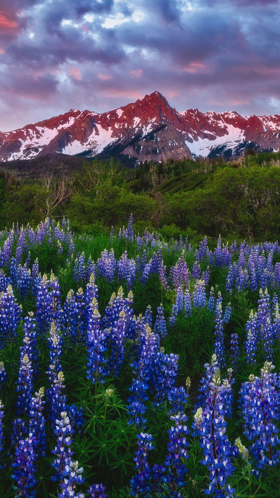 Edytor tapety: Kwitnący łubin na górskiej polanie