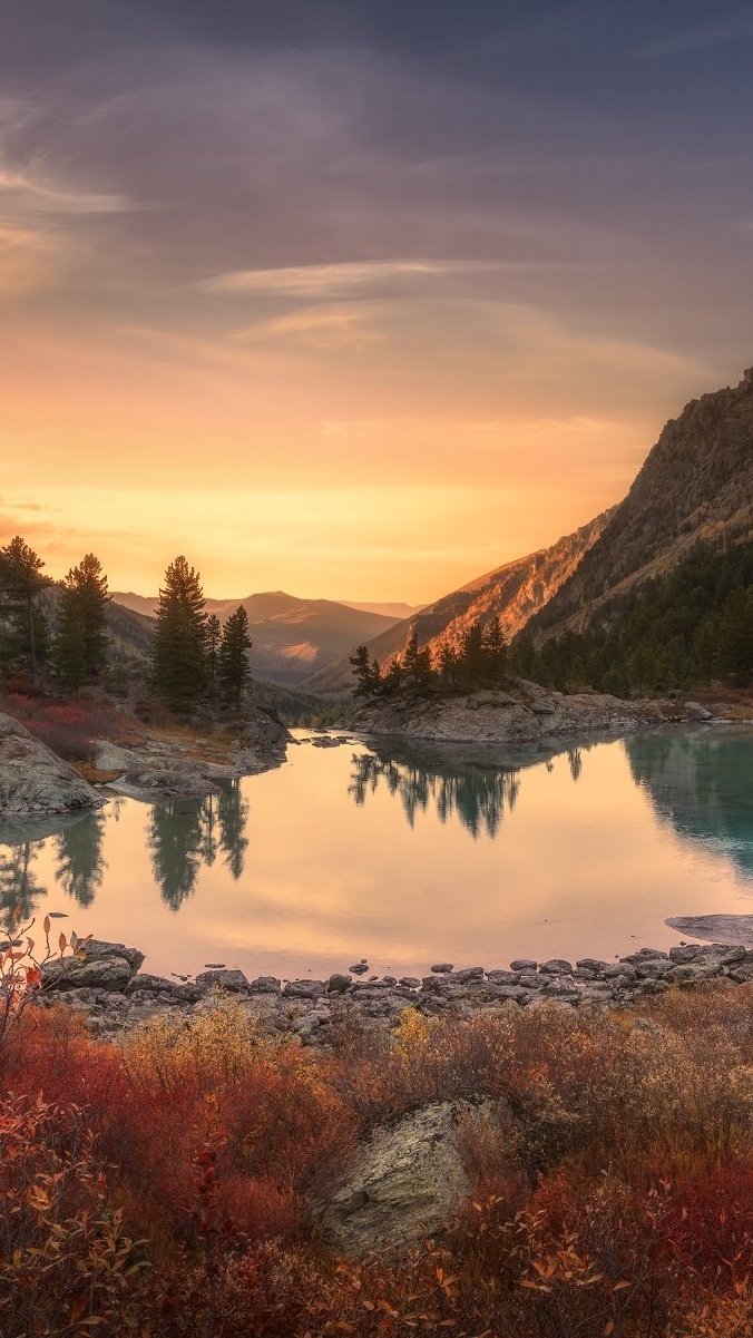 Edytor tapety: Jezior u podnóża gór Ałtaj