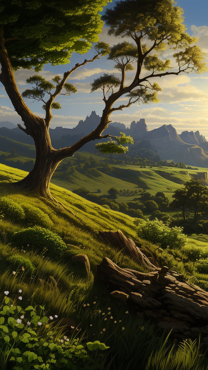 Edytor tapety: Drzewo na wzgórzu w 2D