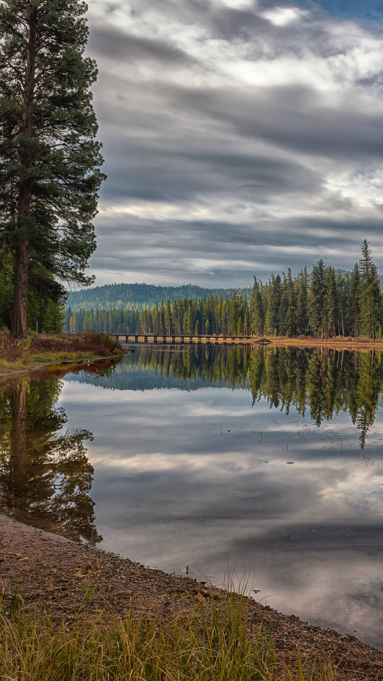 Edytor tapety: Świerki nad jeziorem