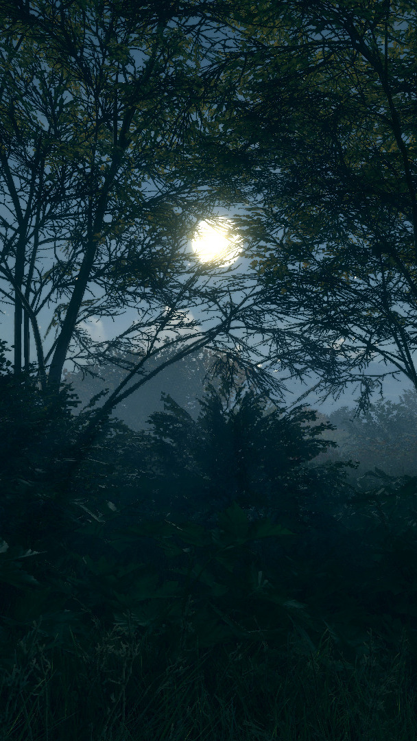 Edytor tapety: Księżyc między gałęziami drzew