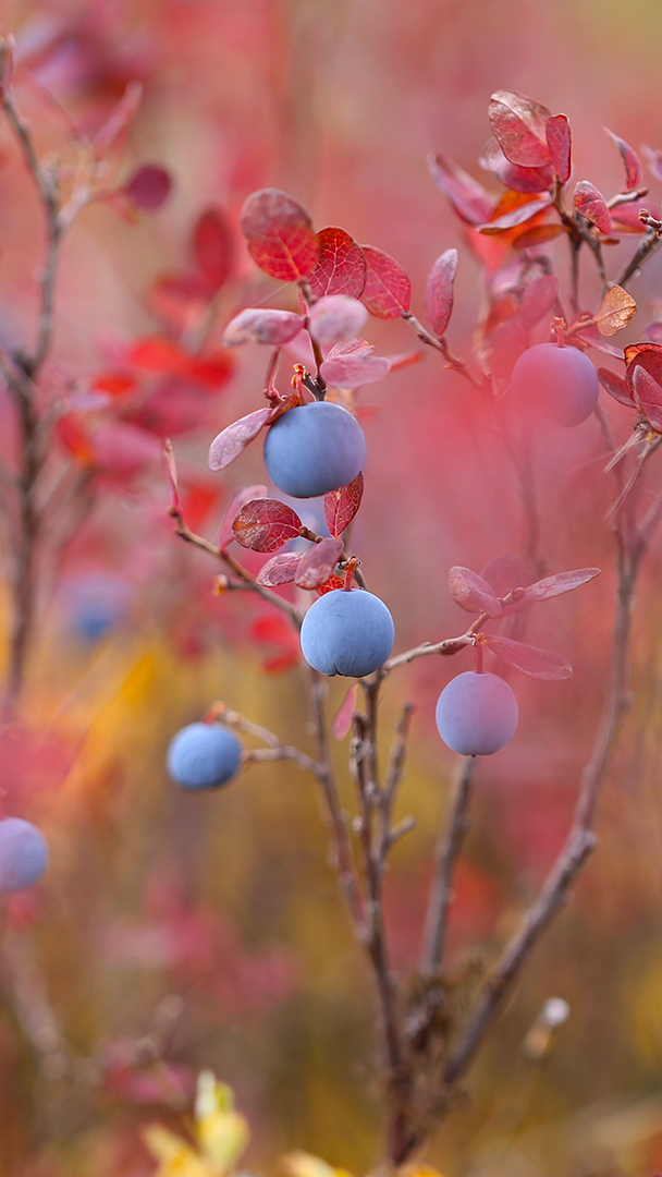 Edytor tapety: Gałązka z jagodami na rozmytym tle