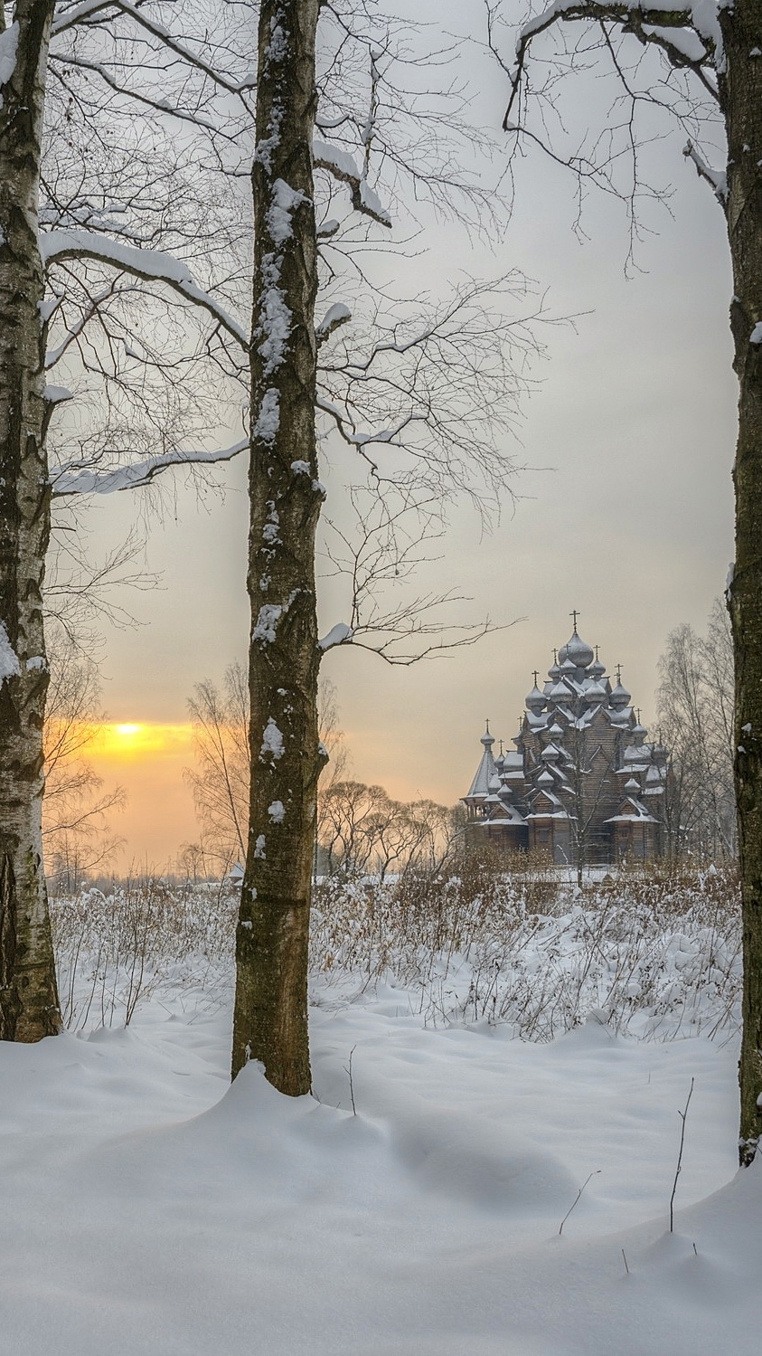 Edytor tapety: Brzozy i cerkiew w oddali