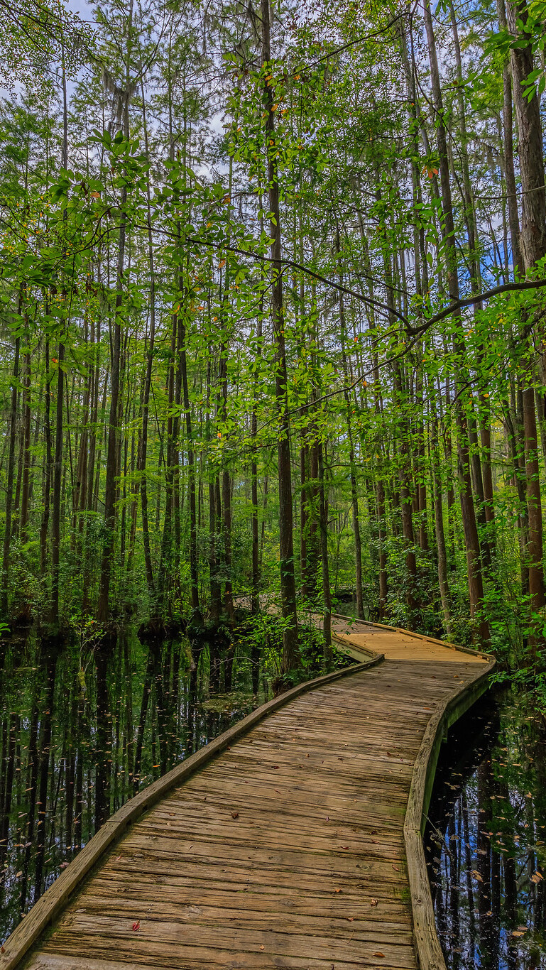 Edytor tapety: Drewniany pomost na leśnych mokradłach