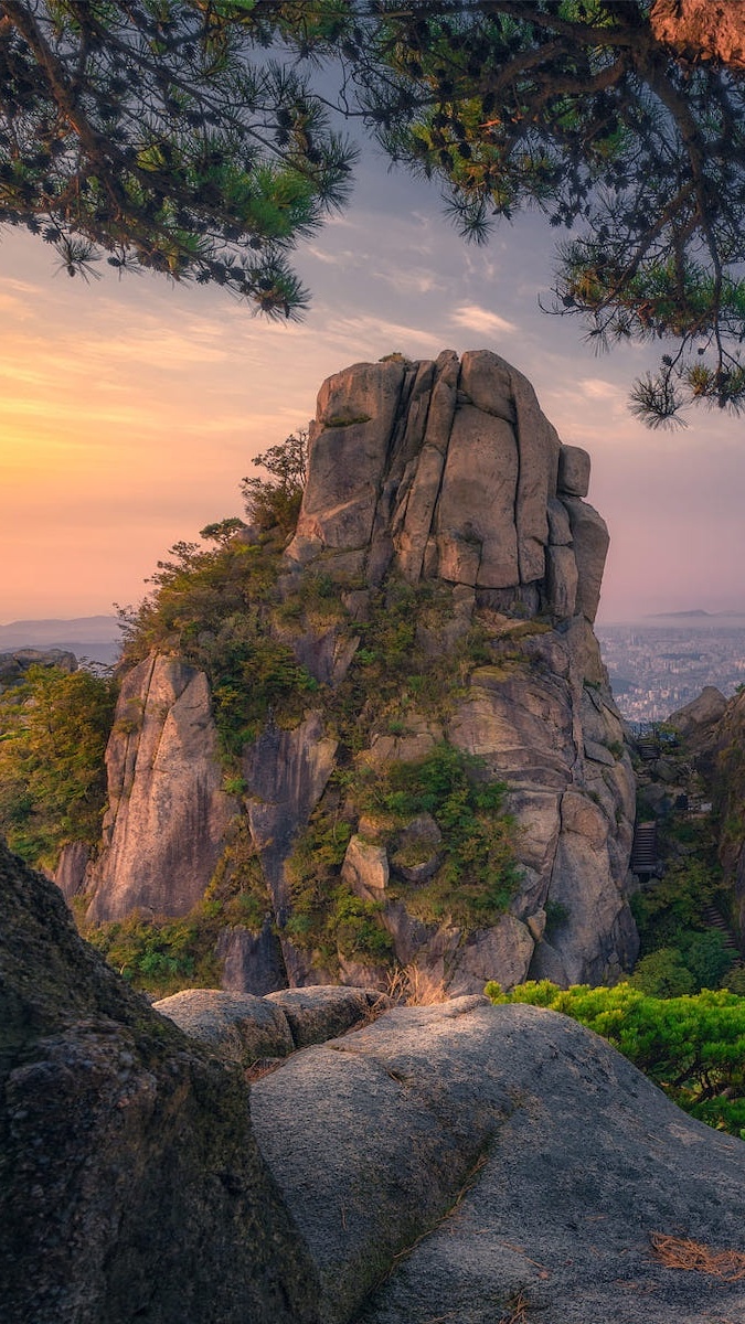 Edytor tapety: Drzewa na skale