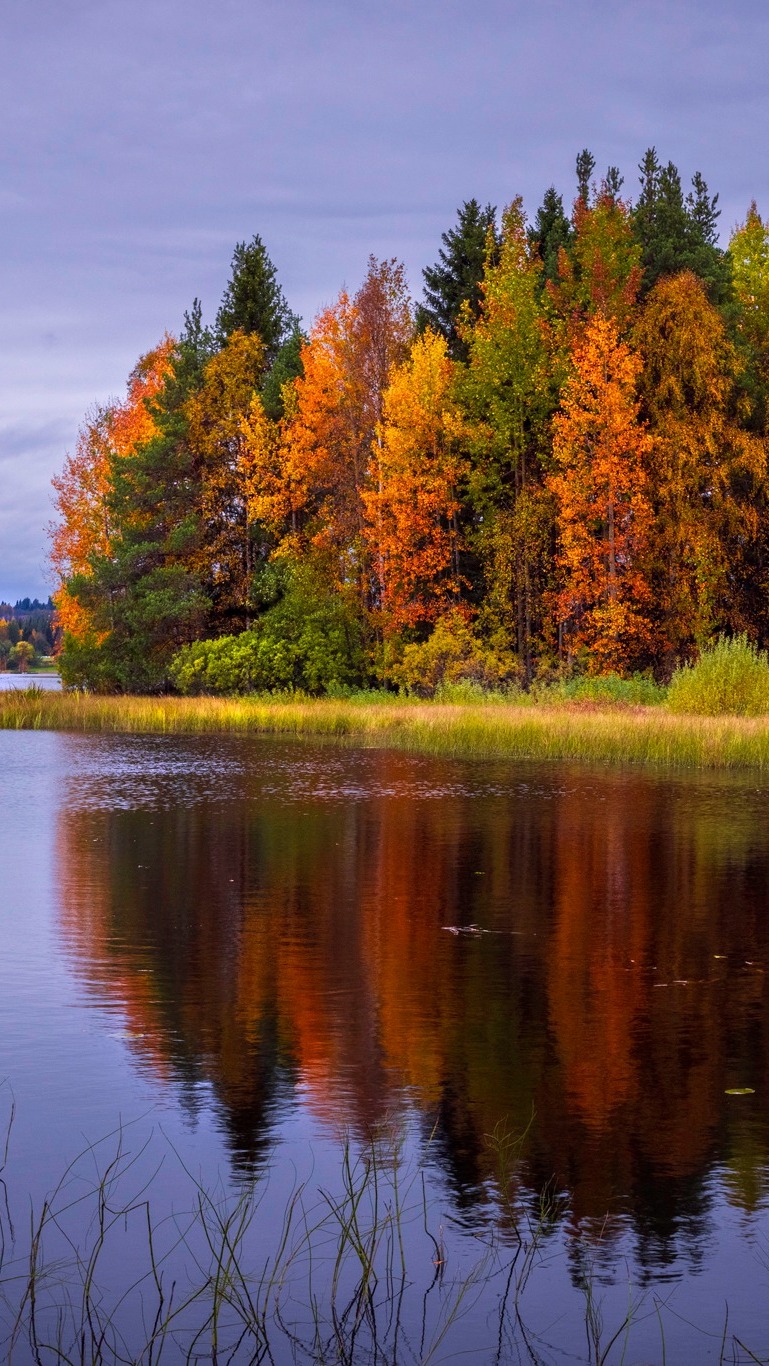 Edytor tapety: Pożółkłe drzewa nad jeziorem