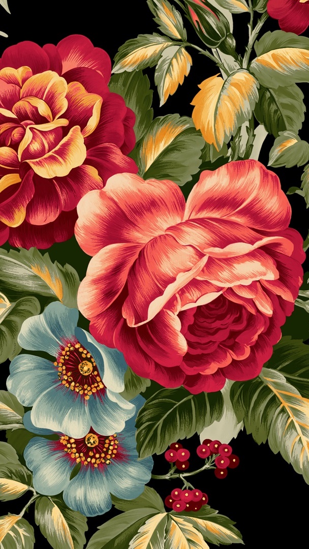 Edytor tapety: Kwiaty i liście w grafice