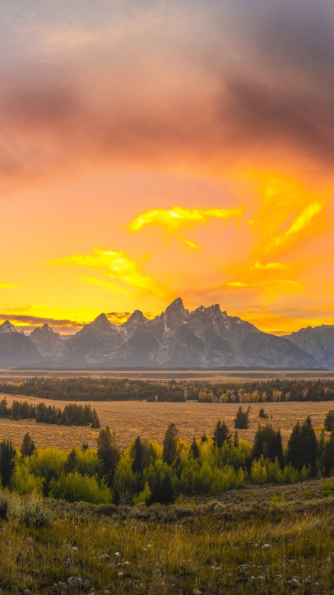 Edytor tapety: Kolorowe niebo nad górami Grand Teton