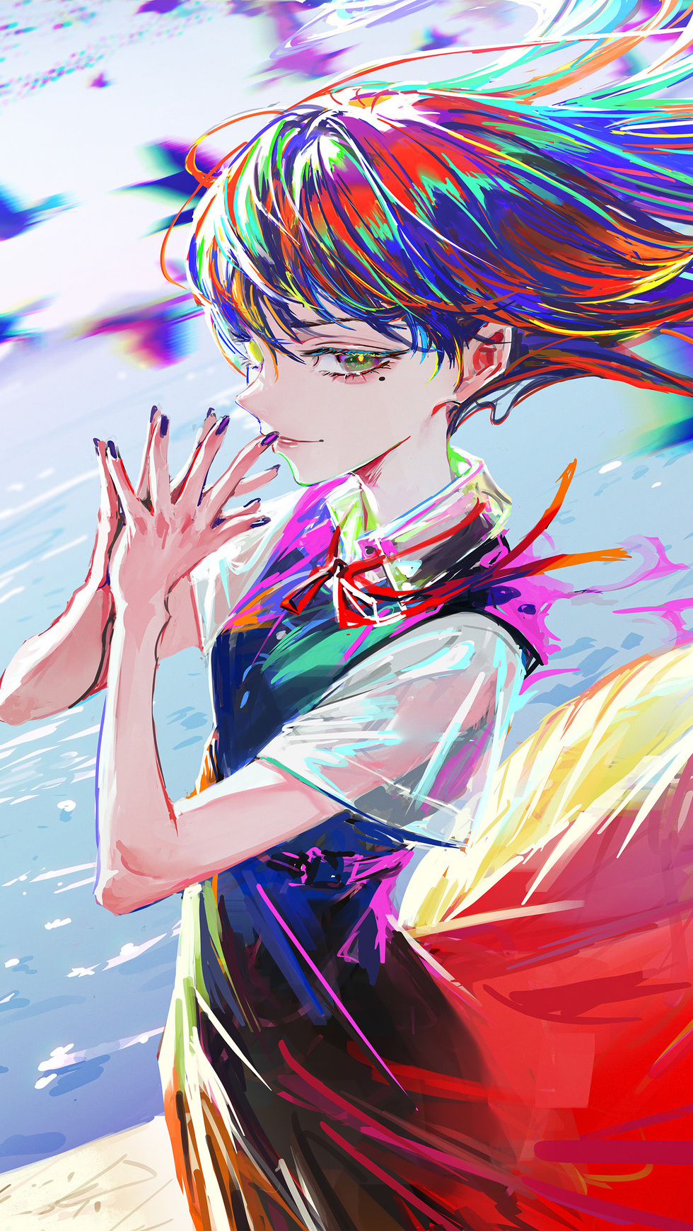 Edytor tapety: Dziewczyna z kolorowymi włosami w anime