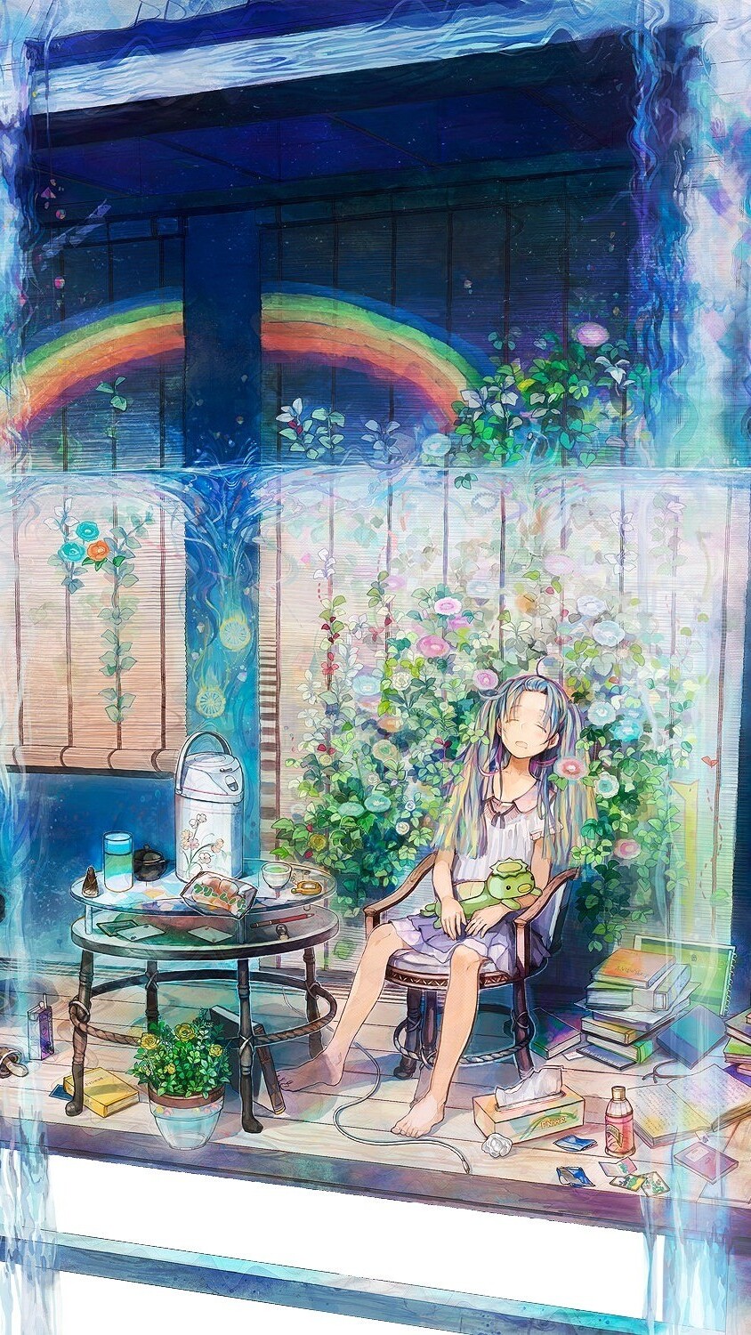 Edytor tapety: Dziewczyna na krześle przy stoliku