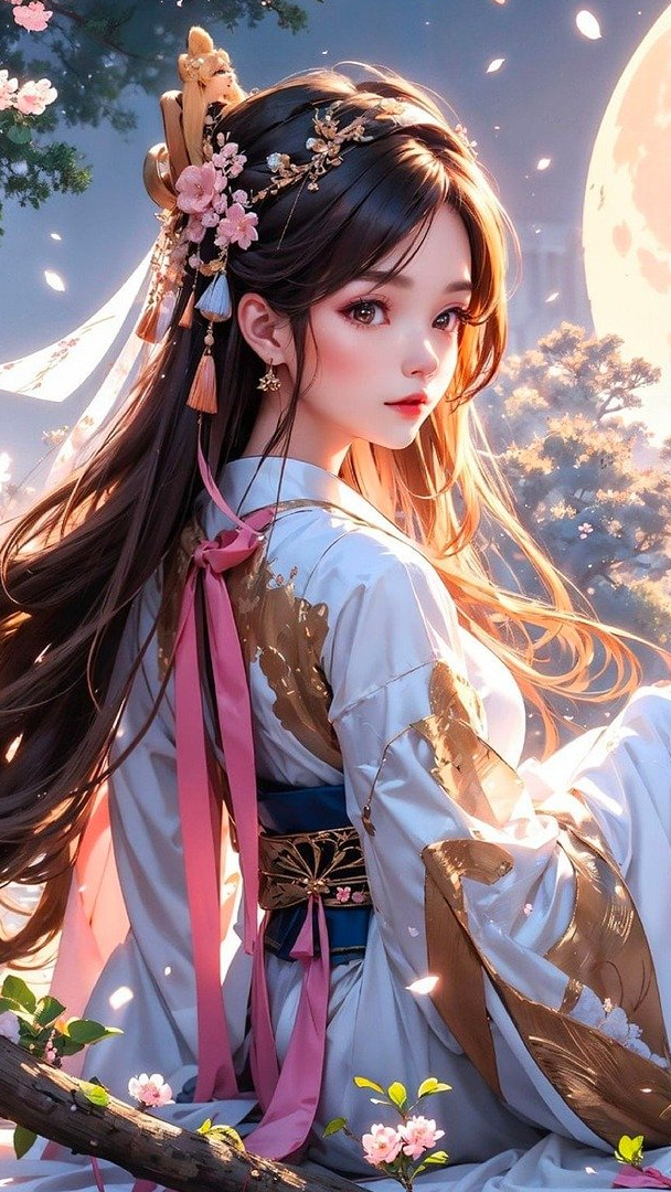 Edytor tapety: Długowłosa dziewczyna w kimono