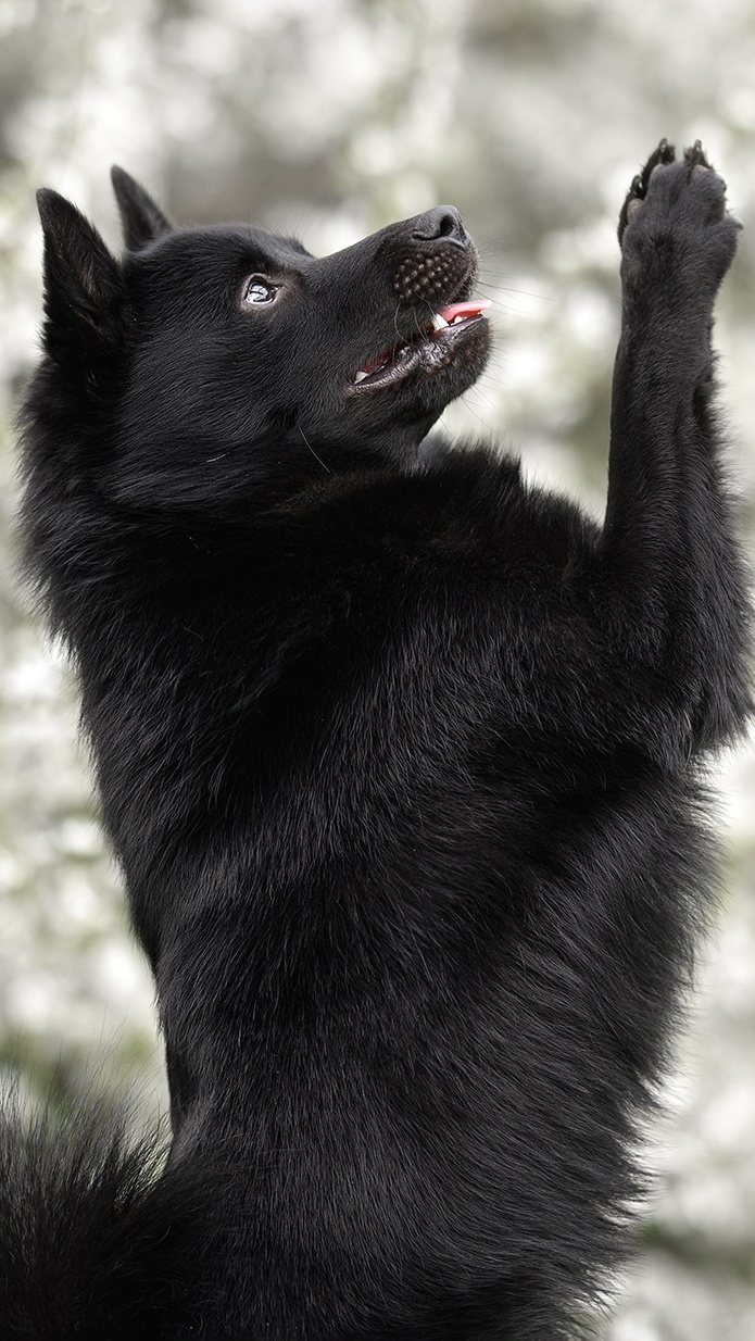 Edytor tapety: Czarny pies z uniesionymi łapami