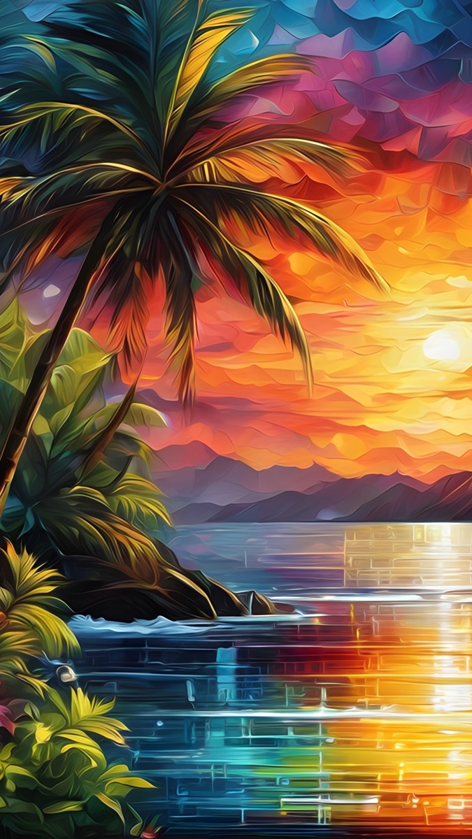Edytor tapety: Palmy na brzegu morza w grafice