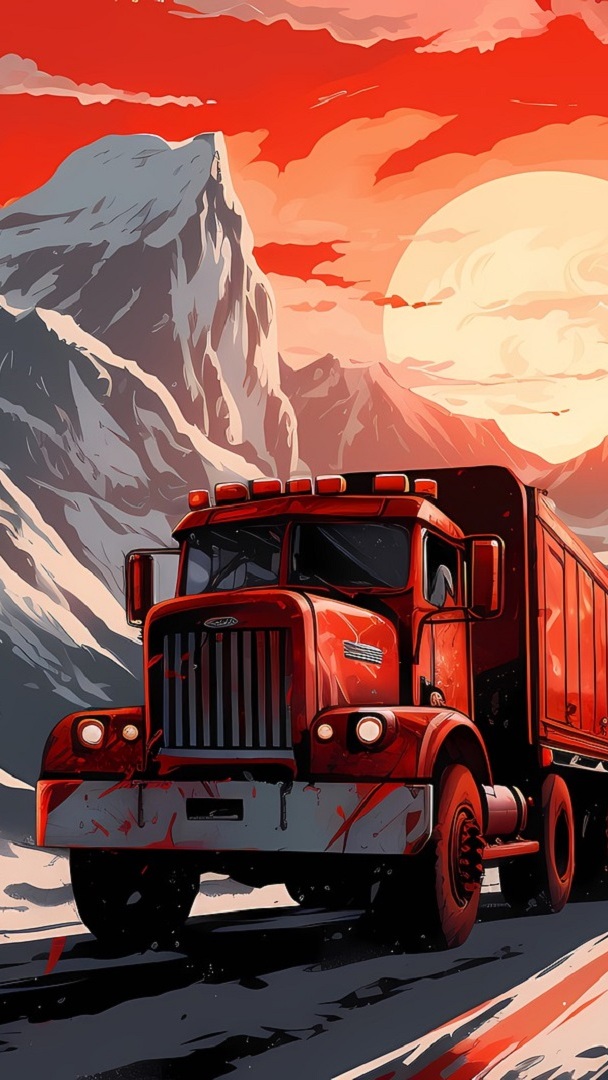 Edytor tapety: Ciężarówka na drodze w grafice