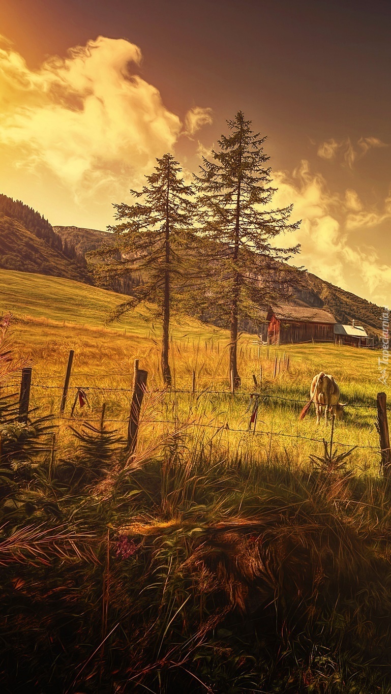 Edytor tapety: Pastwisko pod drzewami