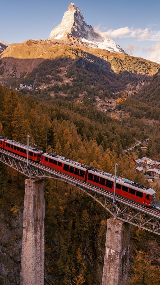 Edytor tapety: Pociąg na wiadukcie kolejowym w Zermatt