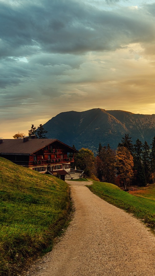 Edytor tapety: Dom przy drodze na wzgórzu